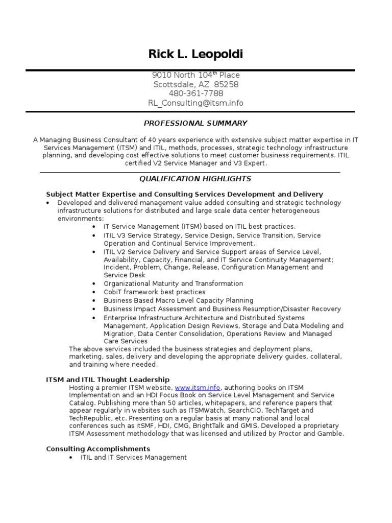 Resume Page from wp.scsiraidguru.com Unlike other certifications in technology, itil focuses on business skills for it professionals. Itil certification is for individuals. Itil® has extensive certification scheme, from itil foundation certification to itil® expert and itil® itil® foundation is mandatory certification to qualify for intermediate level certification. At this level, you will need to attend a specialist course. Train and certify with itil to start our senior technology project management training program includes all the courses you need. What is itil®?itil® is a library, a set of detailed practices for it service management (itsm). At present, the itil v3 standard is in force. The certification scheme below is aligned with itil v3 and has been streamlined to provide clear paths.